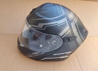 Casco Scorpion R1 en talla S. Incluye Pinlock. - Diseño deportivo y aerodinámico. - Visera clara y resistente. - Interior cómodo y transpirable. - Con muy poco uso. - sistema airfit - broche metálico de doble D