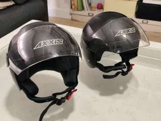 Se venden dos cascos de moto de la marca AXXIS. - Color negro. - Visera transparente. - Cierre de seguridad.