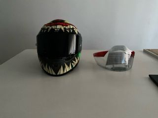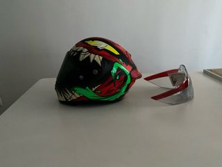 Casco de moto HJC RPHA 1 con diseño Toxin de Marvel. Este casco integral ofrece una estética llamativa y protección.Esta nuevo. - Tamaño XL - Diseño Toxin Marvel. - Modelo RPHA 1. - Visera oscura incluida. - Visera clara incluida. - Alerón casco incluido. - Caja original y nueva. - Pinlock incluido. - Fundas incluidas.