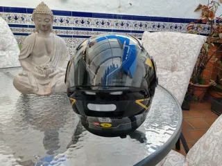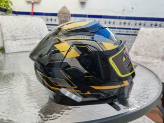 Casco modular con un diseño moderno y llamativo. - Color negro con detalles en amarillo y azul. - Visera integrada. - Cierre de seguridad. -con gafas y talla XL - se regala guantes de invierno con protecciones a estrenar