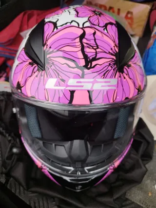Casco de moto LS2 talla XS con un llamativo diseño floral en tonos rosas y blancos. Incluye un intercomunicador SENA SMH5 . - Diseño floral en rosa y blanco. - Visera transparente. - Intercomunicador Sena integrado. Está totalmente nuevo. Mi hija solo se lo ha probado pero no lo ha usado nunca. Precio no negociable. El casco y el intercomunicador han costado 190€. También se puede entregar en la Comunidad de Madrid en persona.