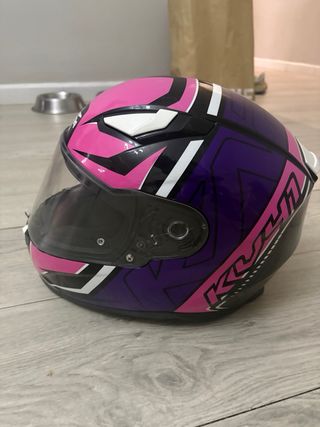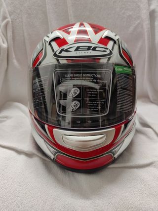 Casco integral KBC para moto, con diseño deportivo y visor transparente. Nunca se ha usado. Está en su caja. - Visor con tratamiento anti-rayaduras. - Instrucciones claras para el montaje y desmontaje del visor. - Talla XL. - Cierre de doble anilla.