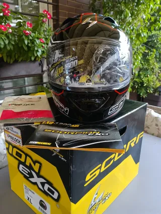 Casco integral Scorpion EXO-1200 AIR . Regalo mochila portacascos Bagster y cámara acción National Geographic con accesorios. Me equivoqué de talla. Talla XL. Pinlock (no usado). Sistema de ventilación Air®. Visera KDF-16 con tratamiento antivaho. Negociable