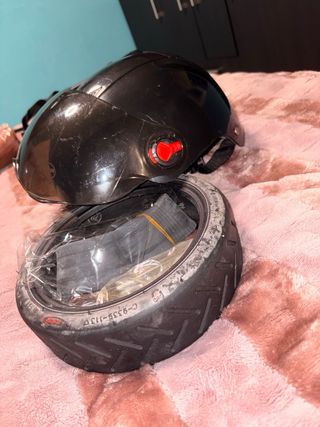 Se vende casco de patinete de la marca Lachman y una rueda de repuesto. - Casco negro brillante. - Rueda con cubierta. -Incluye erramientas 8 euros por separado, el conjunto 15 euros