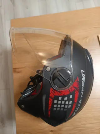 Casco de moto para protegerte en tus trayectos. - Interior acolchado. - Cierre de seguridad. - Todo nuevo, lo unico que no funciona es la visera solar.