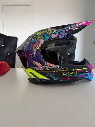 Dos Cascosde motocross Airoh con un llamativo diseño inspirado en el Joker. - Diseño gráfico vibrante y detallado. - Marca Airoh reconocida en motocross. - Se vende suelto o juntos cada casco 150€ si te llevas los dos 270€ - Talla S y L