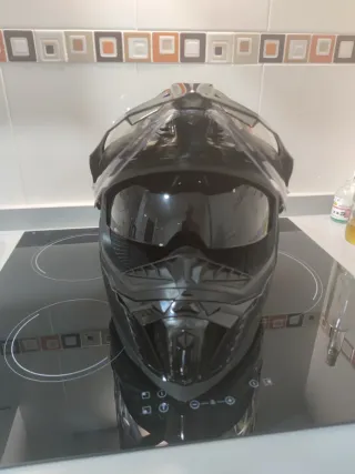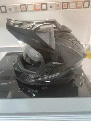 Poco uso,en perfecto estado. Sin caidasCasco de moto LS2 MX 701 Explorer Carbon en talla S. Diseñado para aventuras y uso off-road. Dispone de pinlock instalado,funda y maleta de transporte Visor solar - Calota de fibra de carbono. - Visera clara. - Interior desmontable y lavable.