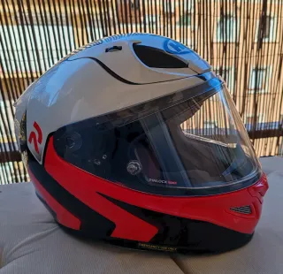 Comprado en enero y usado tres veces. En perfectas condiciones viene con todos los accesorios spoiler de competición y de calle, pin Lock, visera, ahumada y transparente, “peel off” para circuito y mochila de transporte. Valor 1199,90€. Caja original y papeles