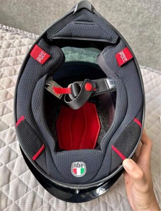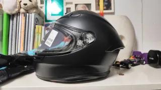Modelo: RX-7RR4 ECE22-05. Talla L. Una parte del burlete de borde / embellecedor del casco se despegó y fue pegado de nuevo, en las imágenes se aprecia, es algo estético por lo que no afecta a la estructura ni a la seguridad del casco, nunca ha tenido accidentes ni impactos.