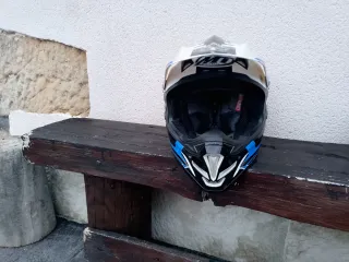 Casco de motocross Talla M Precio negociable - Combinación de colores azul, gris y negro. - Visera aerodinámica. - Interior acolchado para mayor comodidad.