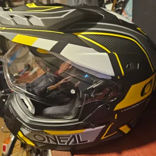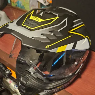 Casco de moto con diseño deportivo y moderno. - Color negro con detalles en amarillo y gris. - Visera integrada. - Marca ONeal. Nuevo. Sin usar