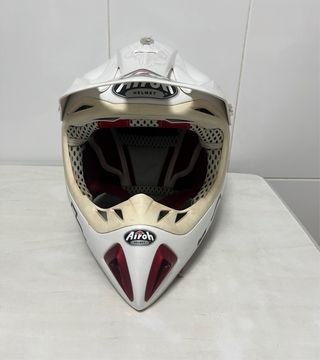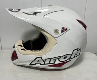 Vendo casco integral de motocross/enduro marca Airoh en color blanco. Usado pero en buen estado general. Exterior con pequeños roces normales del uso. Muy ligero Diseño deportivo y ventilado. No ha sufrido golpes. - Interior con acolchado. - Visera superior. - Cierre de seguridad.
