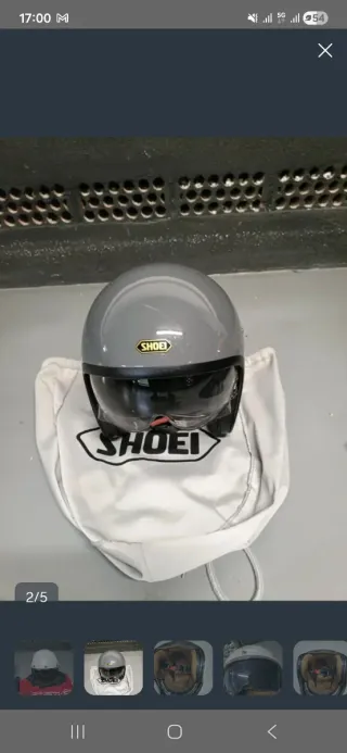 Casco de moto Shoei de color gris con visera. - Diseño abierto. - Incluye funda protectora Shoei. - Talla M