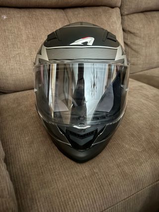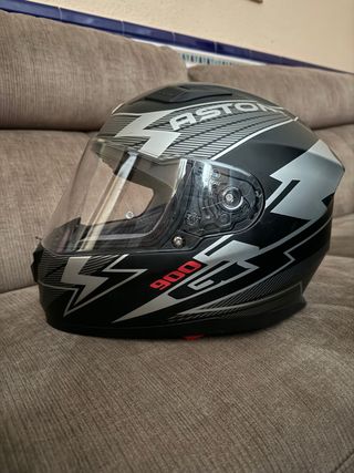 Casco de moto Astone modelo 900 con un diseño deportivo. - Color principal negro con detalles plateados. - Visera transparente. - Estilo sportbike. -talla S -usado pero en buen estado