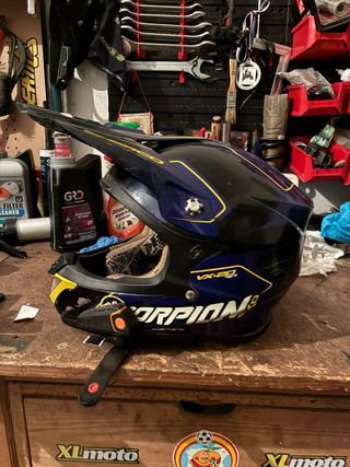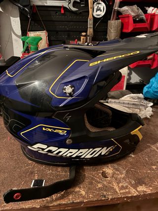 Casco de moto Scorpion Sherco en talla L. Diseñado para motocross o enduro. Se entrega con dos interiores. El intercomunicador también se puede entregar si se desea