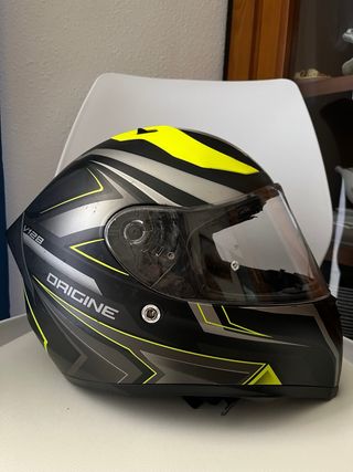 Casco de moto Origine V128. Apenas usado. - Diseño deportivo en negro y amarillo neón. - Talla: XS - Visera transparente incluida. - Ligero y cómodo.
