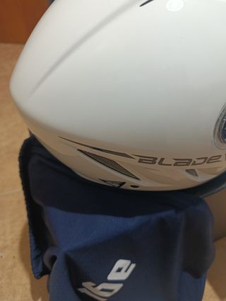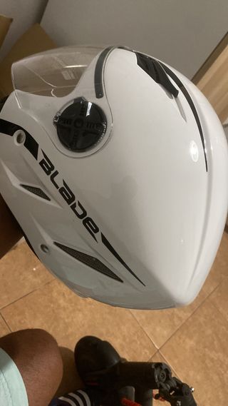 Casco de moto Blade en color blanco. Diseño moderno y aerodinámico. - Visera transparente. - Cierre de seguridad. - talla M