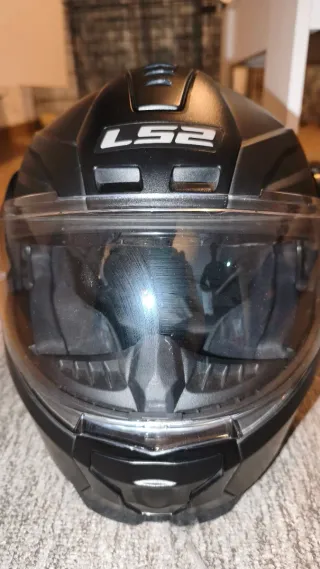 Casco de moto modular LS2 en perfecto estado con intercomunicador. Apenas usado aunque tiene algunos rasguños de haberse caido al suelo (ver fotos). Tiene su caja original y funda de tela para transporte original. Se vende porque pasé a casco integral ya que no nefesito gafas. - Talla XS y homologado - Diseño elegante y moderno. - Incluye pantalla solar integrada. - Sistema de ventilación eficiente. - Mentonera abatible. - Acto para personas con gafas