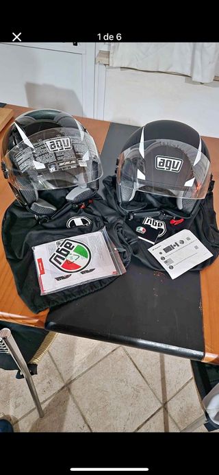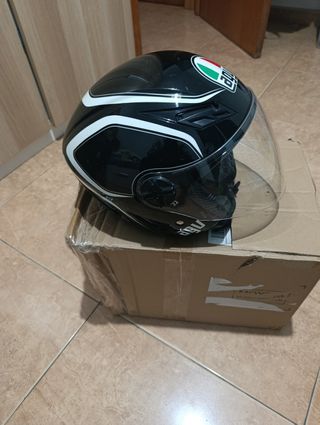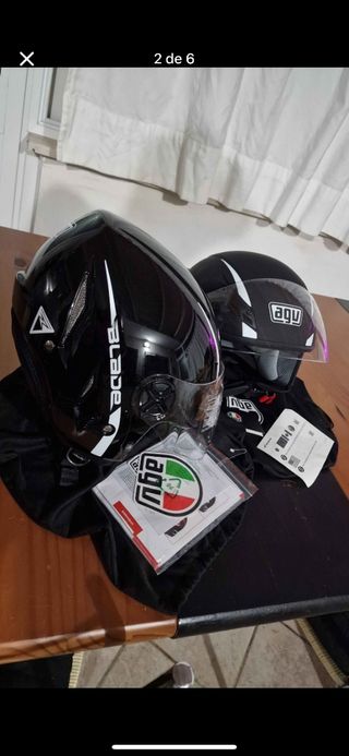 Casco AGV Blade con visera. - Color negro con detalles blancos. - Incluye bolsa de transporte. - talla L los dos