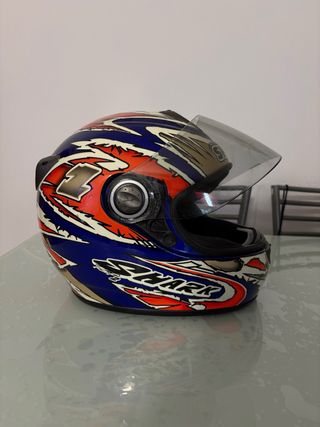 Casco de moto Shoei con diseño John Kocinski. - Diseño con águila y bandera. - Visera transparente.