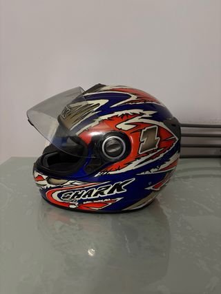 Casco de moto Shark en talla M. Diseño llamativo con detalles en azul, rojo y blanco. Se ha usado 3 veces. Lo he limpiado por dentro desinfectado. - Cumple con la normativa ECE 22.06. - Visera transparente. - Cierre de seguridad. - Interior acolchado.
