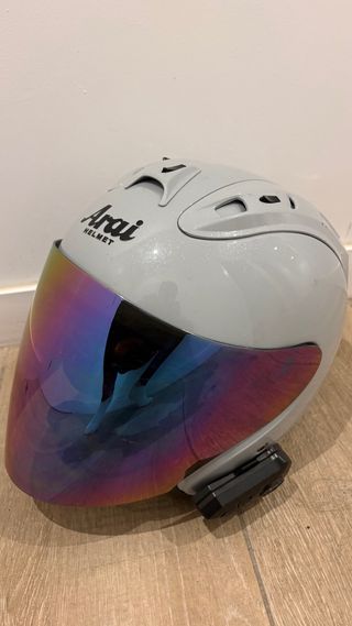 Casco de moto Arai gris con purpurina Visera arcoiris talla s tiene algunas ralladas de llevarlo en el coche arai,agv,moto,yamaha,tenere,kx,kawasaki,honda,crf,helmet,cascogris,visera,cascomoto,araihelmet,hebo,hjc