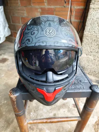 Casco de moto de la marca TAKAI en talla XL. Diseñado para ofrecer protección y comodidad. - Visera transparente y oscura. - Cierre de seguridad. - Interior acolchado.