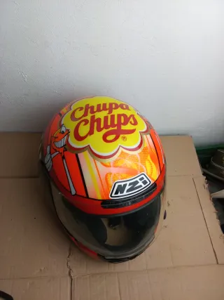 Casco de moto NZI con diseño divertido de Chupa Chups. - Talla S (54-55 cm). - Visera transparente. - Cierre de seguridad.