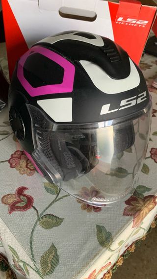 Vendo Casco de moto de la marca LS2 modelo lunar, talla XS. Tiene poco uso y ha sido bien cuidado. Incluye pantalla/gafas solares. Funda de tela con asas largas para poder colgarlo al transportarlo