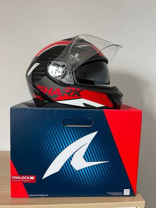 Se vende casco Shark como nuevo, se ha usado 2 veces. Tiene incorporada pantalla negra dentro que se saca con un boton. El casco se compro nuevo en tienda en Enero. Se entrega con su funda y la caja.