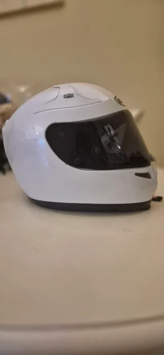 Casco de moto de la marca SHOEI en color blanco. Diseño aerodinámico y visor oscuro. - Marca: SHOEI - Color: Blanco - Visor: Oscuro Escucho ofertas