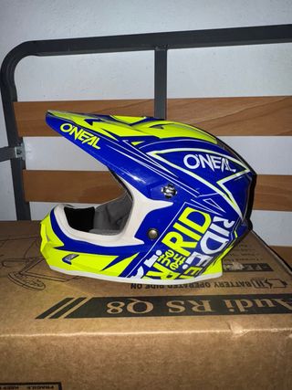 Casco de motocross con un diseño llamativo en azul y amarillo. - Marca: ONEAL - Colores: Azul y amarillo - Estilo: Motocross -Talla niños