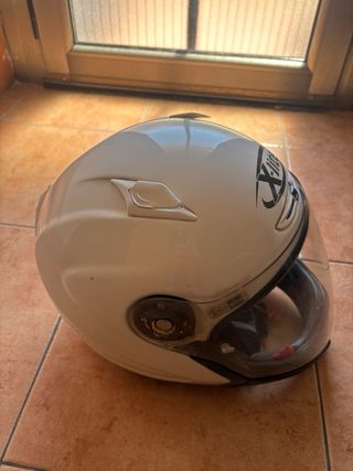 Casco de moto X-Lite X-402 en color blanco. Está en buen estado, aunque presenta algunas pequeñas marcas de uso. - Modelo: X-Lite X-402 - Color: Blanco - Talla: M - Incluye visera.