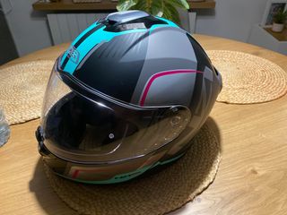 Casco integral Shoei en talla XS. Diseño deportivo en color negro y blanco. - Cierre de doble anilla. - Visera clara. - Interior extraíble y lavable.