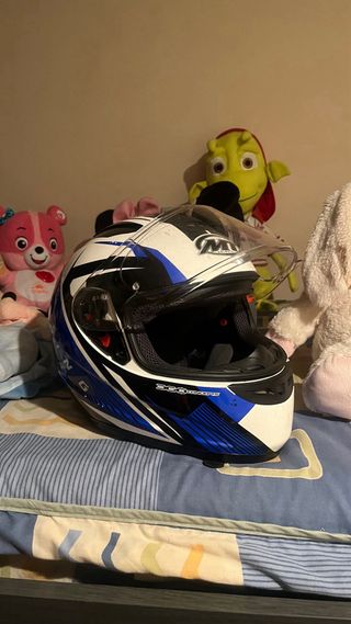 Casco integral MT con diseño deportivo en colores azul y blanco. - Visera transparente. - Interior cómodo. - Cierre de seguridad. Casco XS 53-54 1450g