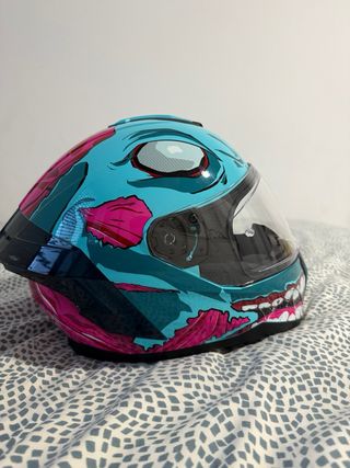 Casco de moto CGM con diseño Undead. ¡Está en excelentes condiciones! - Diseño único Undead. - Color turquesa y rosa. - Talla: S - como nuevo usado 2 meses desde su compra