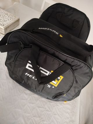 Bolsa de transporte ACOLCHADA para casco de moto, en perfecto estado. -Resistente a los golpes y caídas. - Ideal para guardar y transportar tu casco de forma segura. - Diseño compacto y ligero. - Asa de transporte resistente.
