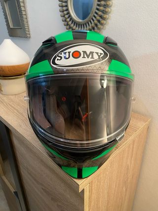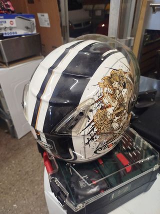 Casco de moto Suomy de alta gama, con un diseño único y colorido. Se encuentra en buen estado. -Modelo Suomy con pintura personalizada. -Talla M -Decoración floral y calavera. -Visera transparente incluida. - casco nuevo costo 600 euros Estamos en Ronda Frances Macía 72 Mataró, CP : 08302 Mataró de lunes a sábado de 10 a 13:30 y de 16 a 20:30. tel: 675156375/ 697 42 35 84