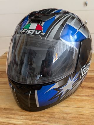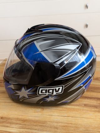 Casco Agv Kinetic en color azul y negro, talla L. Se encuentra en buen estado. visera algo deterioradada por los años - Diseño deportivo. - Cierre de seguridad.
