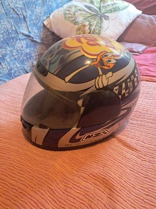 Casco de moto AGV con diseño inspirado en Valentino Rossi. - Talla S - Diseño colorido y llamativo. - Marca AGV. - El interior está gastadillo pero es desmontable, exteriormente sin ralladas ni golpes. - Visera transparente.