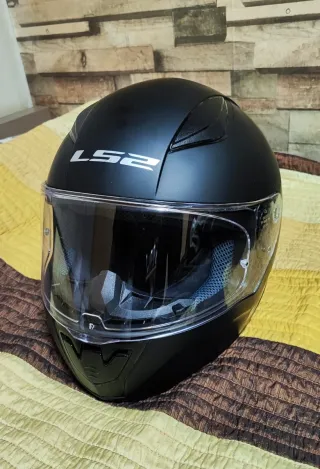 Casco de moto LS2 con diseño deportivo y visor transparente. Ideal para protegerte en tus trayectos. 3 años de uso, sin caidas. Se nita que el protector tiene uso. por dentro esta perfecto! - Talla XS. - Diseño en negro, blanco y azul. - Visor claro.