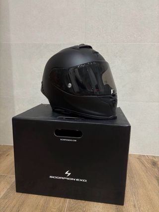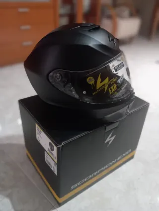 Casco integral Scorpion EXO 391 en color negro mate. Diseñado para ofrecer seguridad y comodidad. TALLA L - Sistema de ventilación avanzado. - Interior extraíble y lavable. - Cierre de doble anilla. - Visera anti-rayas. - Sistema especial de extracción de casco en caso de accidente. - Viene con bolsa para casco, manuales de usuario y caja original. - Diseño deportivo. - PVP original = 109,90€ - Lo vendo porque compré la talla equivocada. Tengo el mismo casco, puedo ofrecer información sobre el uso diario y recomendación de visera ahumada para el casco.