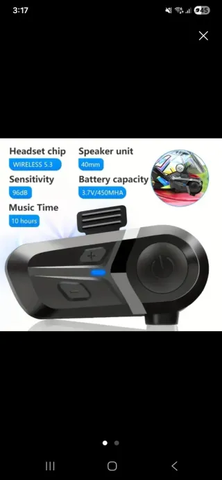 Intercomunicador para casco de moto con tecnología inalámbrica. Se escucha perfectamente. No negociable - Chip: Wireless 5.3 - Unidad de altavoz: 40mm - Sensibilidad: 96dB - Capacidad de batería: 3.7V/450mHA - Tiempo de música: 10 horas