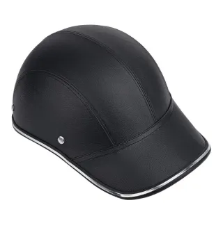 Casco de moto con un diseño único que imita una gorra. - Exterior en cuero sintético negro. - Ribete plateado en el borde. - Costuras decorativas en la parte superior. Adecuado para una circunferencia de la cabeza de 54 a 60 cm, lo que proporciona una seguridad óptima.