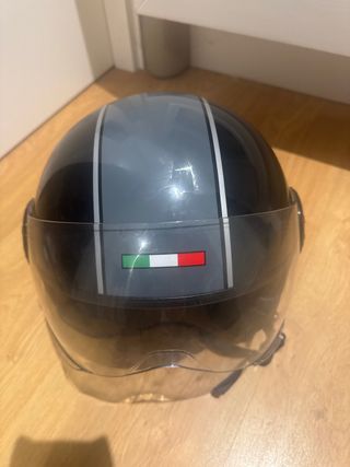 Casco Delta Sport con diseño deportivo y visera. - Diseño con franjas grises y blancas. - Bandera italiana en la parte frontal. - Visera transparente.