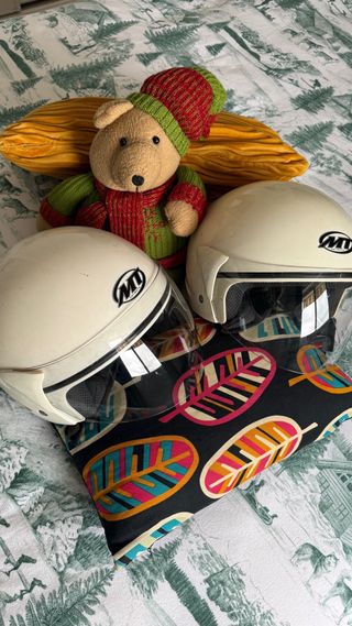 Se venden dos cascos por 30€ los dos. Marca MT tipo jet en color blanco. Uno es talla L y el otro talla XL. - Marca: MT Helmets - Tipo: Jet - Color: Blanco - Tallas: L y XL