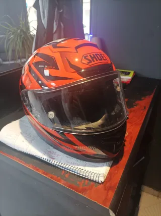 Casco de moto Shoei naranja y negro talla L