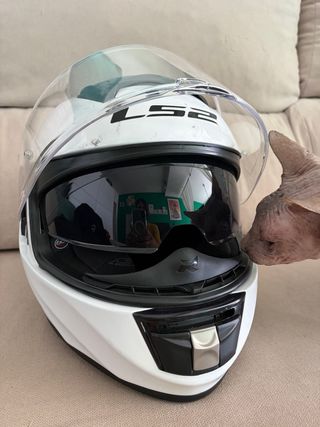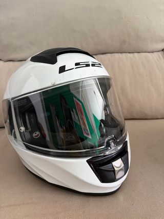 Casco de moto marca LS2 en color blanco. Con funda - Visera transparente. - Doble visera (una oscura interior). - Cierre de seguridad.