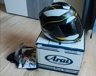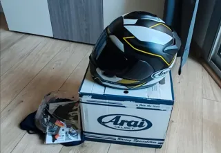 Casco de moto Arai modelo chaser x, talla S con un diseño deportivo en negro, blanco y detalles amarillos. Esta en muy buen estado, ha tenido poco uso, se entrega con pantalla oscura y transparente y bolsa de transporte. Su precio nuevo ronda los 600€ mas la visera oscura 69€ - Incluye caja original. - Incluye manuales y accesorios. Palabras gancho, Alpinestars, Dainese, berik, arlen ness, spyke, Goya moto, traje moto, revit, ixs, spidi, hjc, shark, shoei, Arai, scorpion, xlite, Nolan, agv, rainers, Mt, ls2, casco, casco moto, casco deportivo