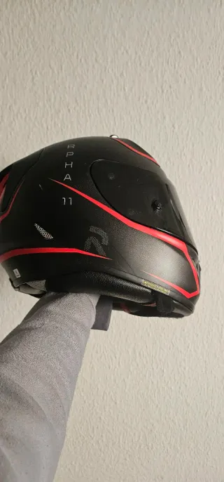 Casco integral HJC RPHA 11 en color negro con detalles en rojo. Diseño deportivo y aerodinámico. - Talla S - Calota exterior P.I.M. Plus. - Pantalla HJ-26 con protección UV. - Sistema de ventilación avanzado. - Interior desmontable y lavable. Usado 1 año exporadicamente. Como desperfecto tiene algun picotacillo de nada que se puede ver en la ultima imagen.